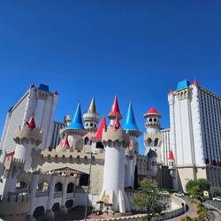 Nach einem anstrengenden Tag kommen wir am frühen Abend endlich in Las Vegas an und checken in unser Hotel (Excalibur) direkt am Strip ein.