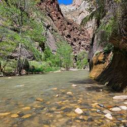 Vom Visitorcenter aus geht es mit den Shuttlebussen zum Riverwalk bei den Narrows.