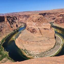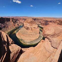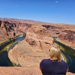Von diesem unglaublichen Ort haben wir bereits im Vorfeld Bilder gesehen, an dem sich der strahlend blaugrüne Colorado River um einen großen, braunen Felsen schlängelt. Der Kontrast zwischen dem sandbraunen Gestein und dem Wasser macht das Farbspiel umso intensiver.Read more