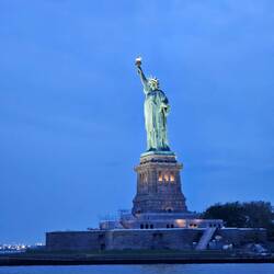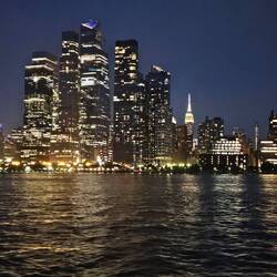 Auf dem Rückweg nehmen wir Kurs Richtung Freiheitsstatue, bevor wir wieder am beleuchteten Manhattan vorbei zum Anleger zurückkehren.