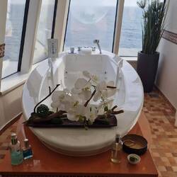 Heute geniessen wir das Leben an Bord. Das gute Essen, die Drinks und die gebuchten Massagen.