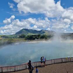Heute starten wir von Whitianga nach Rotorua. Koffer packen und los geht es. Ca. 4 h Fahrt durch Berge und entlang der Küstenstrasse liegen vor uns.