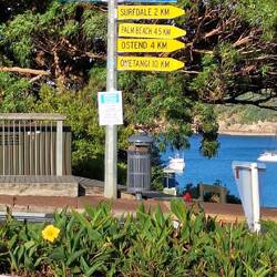 Ein kurzer Weg führte im Ort runter zum Beach und wie immer war durch Toilettenbauten (sauber und nutzbar) sowie Müllcontainer in der Nähe für ein gepflegtes Ambiente gesorgt. Man sieht auch im öffentlichen Bereich immer wieder Leute, die sich um Reinigung, Müllentsorgung, Grasschnitt an den Wegen etc. sorgen. Daher sieht auch nichts irgendwie runtergekommen aus
