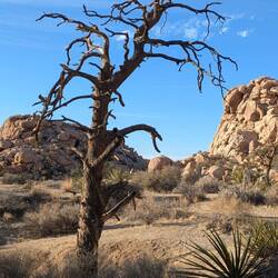 Joshua Tree NP ist eine 3200 km² grosse Wüstenfläche. Im Sommer mit Temperaturen über 38 Grad und wenig bis kein Wasser. Tier- und Pflanzenwelt haben sich aber bestens angepasst.