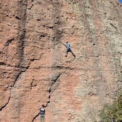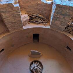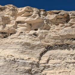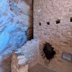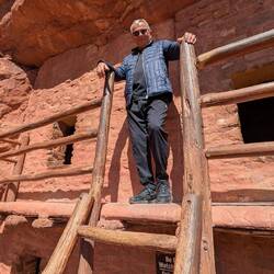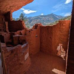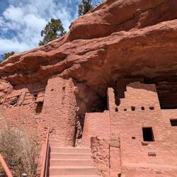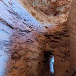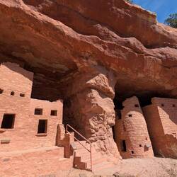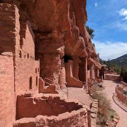 Unter einem Überhang aus rotem Sandstein befinden sich über 800 Jahre alte Felswohnungen.