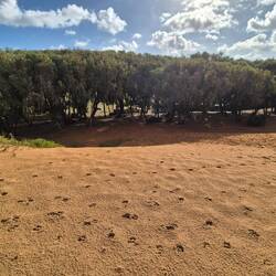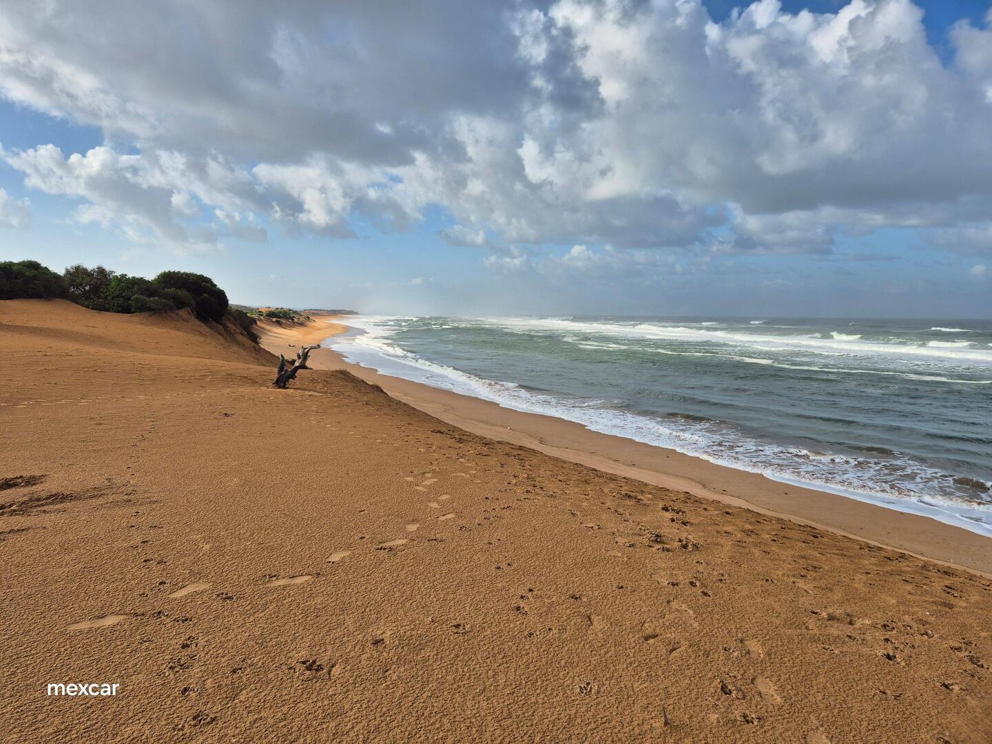 Consigo llegar a este camping desde El Jadida y es de dia. Tiene buena pinta, plazas de camper, árboles, servicios y tras una duna la playa.
