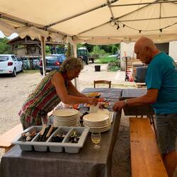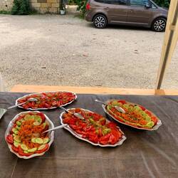Wow. Bis um 9:00 Uhr himmlisch geschlafen. Meine Aufbaubatterie zeigt auf dem Display an, daß der Ladezustand unter 10,4 Ampere liegt. Somit steht zu wenig Strom zum Start der Heisswasserbereitung zur Verfügung. Die Anzeige im Display ist allerdings insofern zu vernachlässigen, da mit dem Einbau des neuen Wechselrichters und der Litiumbatterie der Ladezustand nur noch korrekt über eine App angezeigt wird. Diese zeigt den Ladezustand mit 99 % , aber den Status „entladen“ an. Kurz nach Mitternacht hatte ich die Batterie mit Audrey noch am Strom angeschlossen um heißes Wasser zum Duschen zu haben. Nach dem Kaffee ☕️ kam Claude, der sich als Elektriker und langjähriger Wohnmobilfahrer mit der Technik bestens auskennt und hat alle Stromabnehmer, Batterie, Wechselrichter, Ladegerät des Solarpanels usw. überprüft. Ergebnis: Alles in Ordnung!! Er nannte die Anzeige in der App bizarr. Solange jetzt wieder alles funktioniert kann ich ich damit leben. Erklären können wir uns das nicht. Da muss ich beim Caravaning Center nachfragen, warum beim Ladezustand von 99%, perfekt, der Status mit entladen angezeigt wird. Zwischenzeitlich ist es kurz vor 12:00 Uhr und zu spät um die Jurade zu besuchen. Mittags gab es gegrilltes Bauchfleisch mit Bohnensuppe, vorneweg Tomaten und anderes Gemüse und als Nachtisch Obstsalat und oder Käse.🧀 Ich hatte ordentlich zugelangt, weshalb ich mir 1,5 Stunden Mittagsschlaf gönnte. In dieser Zeit waren alle Gäste, bis auf Christian, Valerie, Simone, Alex und Kelvin abgereist, ohne das ich davon etwas mitzubekommen hatte. Kelvin und Alex wollten am späten Nachmittag noch nach St. Emilion um William im Restaurant, wo er bedient, zu besuchen und um 1 oder 2 Bier zu trinken. Zuerst wollte ich nicht mit ihnen fahren, aber nachdem Olivier zusagte uns abzuholen, fuhr ich mit den beiden, chauffiert von Patrick, nach St. Emilion. William freute sich über unseren Besuch. Jeder von uns Dreien bestellte eine Runde und wir waren bereits im Gehen, als William noch eine weitere Runde ausgab. Dazu reichte er spanischen Aprikosenschnaps, eine Spezialität des Hauses. Zwischenzeitlich war es 19:00 Uhr und das Restaurant schloss offiziell. Da drehte der Inhaber Stephan die Musik auf und kredenzte eine Flasche seines besten Weißweins, die wir gemeinsam mit Daniele, der auch ein Geschäft in St.Emilion mit dem Verkauf von Salami, Schinken und Käse betreibt, leerten. Es wurde angeregt parliert und so schnell konnte man kaum sehen brachte Stephan noch zwei weitere Flaschen, die ebenfalls auf das Haus gingen, an den Tisch Diese wurden auch nicht warm und alt. Spätestens jetzt wäre Zeit zum Aufbruch gewesen, aber Daniele ließ uns nicht gehen bevor noch zwei weitere Flaschen Weißwein, die er spendierte, getrunken waren. Beste Vorsätze nur ein oder zwei Bier zu trinken wurden durch den Verzehr von 2 Bieren, 2 Schnäpsen und fast einer Flasche Wein pulverisiert. Schön war es trotzdem und beim Abschied wurde sich zum Petanque für Montag verabredet, Olivier holte uns im Anschluß ab und kurz vor 21:00 Uhr trafen wir zum Abendessen im Weingut ein. Gegessen wurde in der Küche und kurz nach 23:00 Uhr gingen alle ins Bett, bis auf Simone, Valerie und Christian die sich verabschiedeten. Christian muß morgen um 11:00 Uhr schon wieder an der Sorbonne Vorlesung halten. Das wird eine kurze Nacht für ihn, im Gegensatz zu mir. Für mich gibt es morgen nichts zu tun außer 5 Spieße vorzubereiten und zu 🍖 grillen. Gute Nacht.Read more