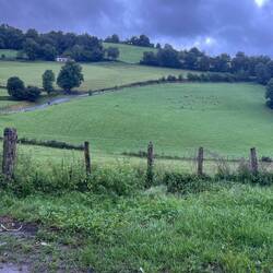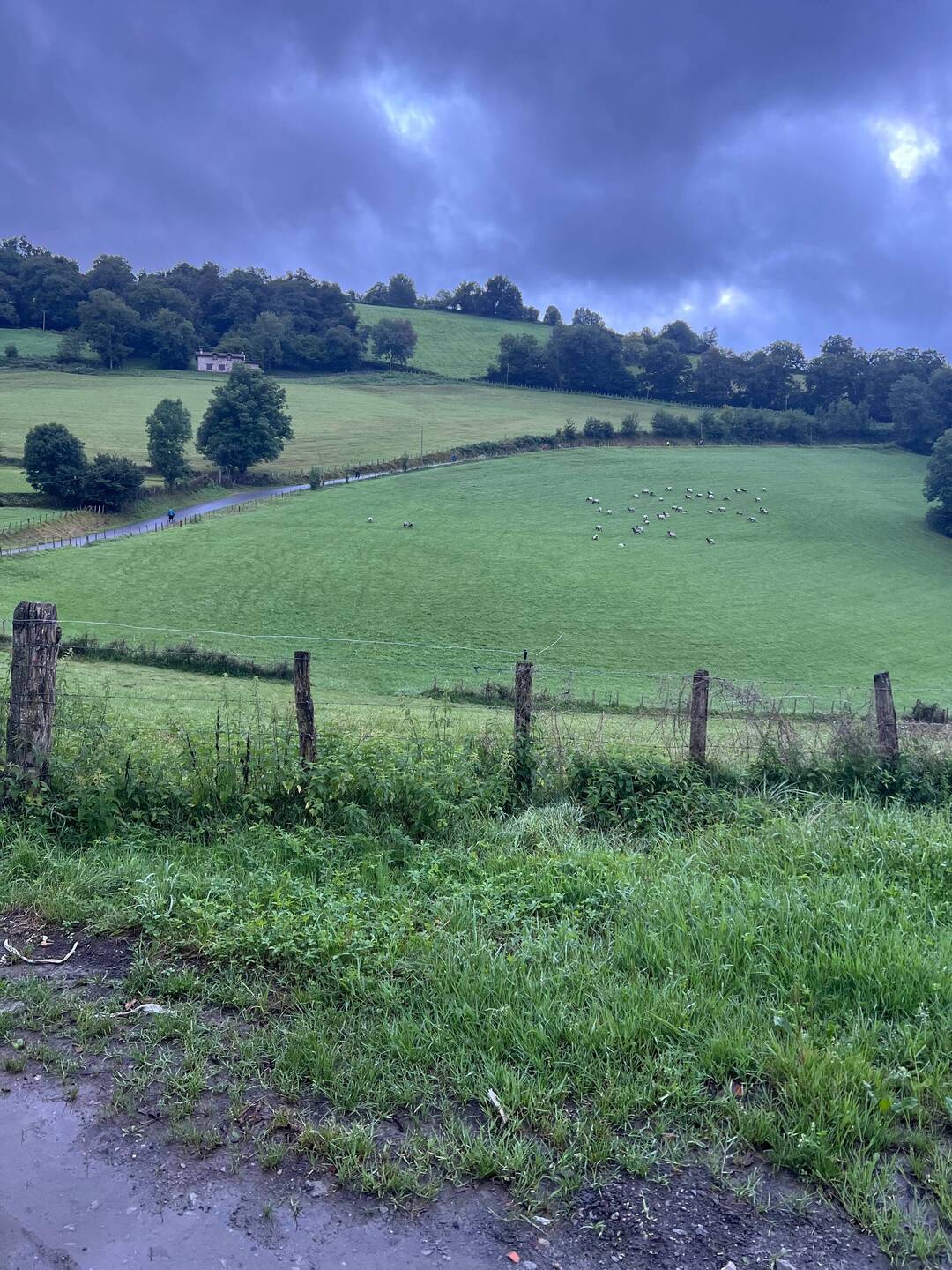Great walk today. It rained the whole time so I didn’t get that many photos. I got on the trail at 5:30am. Followed some other Camino walkers the wrong way for a mile, realized it, got on the right path and walked until4pm. Soaked through when I arrived at my accommodations in Roncesvalles. They have laundry service, getting the muddy mess washed and dried and ready for fun tomorrow! Beautiful sight: mountains, rolling green hills, sheep out grazing, unusually large slugs, lots of mud and great people. Gonna go rub the feet for a really long time. 50,000 steps, baby!!!!Læs mere