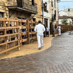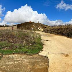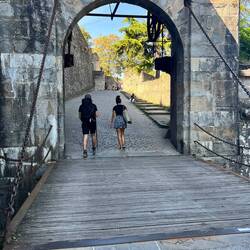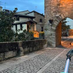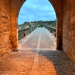 Later start today, got on trail at 7am. Mostly down hill, so easier that way. Made through the big city called Pamplona. It was a long time walking to get from one side of the city to the other. The photo of the draw bridge is at an old military fort called The Citadel of Pamplona built in the 16th and 17th centuries. After leaving the city I found a small hostel in a town called Cizur Menor. Its a small community preparing for a wine festival. Score! I am going have my first official Menu de Perigrino in 3 hours. Hiking legs are good, but it felt like more than 13.5 miles due to all the pavement and 85 F temp. Tomorrow rain is predicted.Læs mere