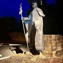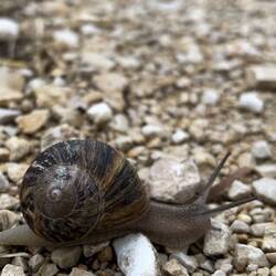 During the night there was a large thunderstorm. At one point the crack of thunder was so loud it shook the hostel and I jumped up hearing rattling and clinking of dishes. One women jumped and then promptly fell out of her bunk. Luckily she chose the bottom. She did say a few choice words. Knowing more rain was predicted to start some time that day and hearing sunrise at the high point on this leg of the Camino was great I set off at 4:30am. I am getting very practiced at packing everything I can before going to sleep, then picking up my belongings and tip toeing to the bathroom where I stuff my liner and sleeping bag in the stuff sack do a few things and quietly go out the front door before I wake anyone. There was one pilgrim right behind me only he drug his stuff to the kitchen. I donned the headlamp and start down the path. I learned to scout how the path leaves town so I don’t have a repeat of day one (getting lost). Not long after exiting town the kitchen pilgrim caught up to me. He had on high beams so I stepped aside and let him pass. All I had to do was follow the glow of his headlamp and check his navigation. Also a lesson from first day. Don’t assume the pilgrims you’re following knows their way OR are going your way. At the top, right at sunrise, were cutouts of pilgrims over the centuries, a cross to lay your stone you brought from home. This monument is called Alto de Pardon, a place of forgiveness. I laid my stone there and got back on the trail, a steep decline that was really tumbled and loose with big roundish rocks. Nearly fell twice. But those walking sticks are life savers. The rest of the walk was pleasant with a few sights to see in this agricultural area for cereal grains and wine vineyards. Cool snail about the size of a golf ball. I tasted the grapes. Mighty tasty! It was about 10am and the clouds started opening up. When I saw lightning nearby I decided to grab a room and head for cover. I am so glad I did as it just began raining buckets. I slept for an hour and then went in search of food, which I found at a nearby grocer. The restaurants have weird hours because of a festival so grocers it is. It was a shorter day that I may be able to make up some of tomorrow. Got in about 9.5 miles even with the rain. I only had another 2mi to get to my destination (Puenta la Reina) however, this tiny room is private and comfy and has it’s own bathroom with warm shower, and no snoring. Oh, what I would pay for a soak in a very hot tub. I’ve started to earnestly look for that hot soak and a massage . Looking ahead the leg to Estella tomorrow may have some more hill climbing. Last photos are of the town church and preparation for a bull running festival. The drown bug is how I felt after being out in the rain.Læs mere