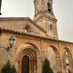 Left the city of Estella reluctantly this morning. Such a pretty place and nice alberque. Had a great dinner chatting with a couple from Georgia who are enjoying retirement. Got out on the trail at 6:30am. Another pilgrim on the trail showed me a shortcut that was lit with street lights. That helped because I skipped the dark unlit portion until sunrise. I saw him at morning coffee and he managed to tell me that he navigated to the famous wine fountain, which was closed. Glad I didn’t go out of my way to go there. Soon after I met an Australian who asked for help getting her water bottle out of her side pouch, which like mine takes a contortionist to reach. I obliged and ask her for the same. We filled our water bottle there. And for the rest of the day she was great company. I stoped at Los Arcos and she continued on. She’s rethinking her choice of school teacher career as she says Australia is losing teachers in droves. Overcast all day with only a few hill climbs. Tomorrow hotter, so probably an early start. When sleeping in a bunk room getting up early is not a problem.