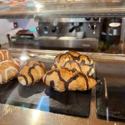 This morning we had a croissant a la plantxa. It is a croissant cut in two, seared in butter then a marmalade, butter and honey mixture spread on and served seared sides together with a knife and fork. Heavenly!