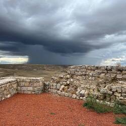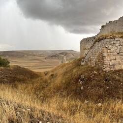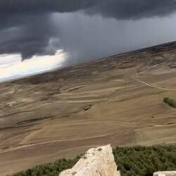After dinner we decided to take a walk. We went to the top of the hill above Castrojeritz to see the castle ruins which were awesome. We stayed 5 minutes too long got caught in a hailstorm and downpour. Getting stung by hailstones we made it painfully back to town to city streets overflowing with water. We walked and waded in knee high water back to the boardinghouse which had standing water in its common rooms and kitchen. We made our way upstairs to our room and bathroom and got dried off and rung out. Cell phones and wallets soaked, and everything we were wearing is strung up to dry. What a adventure! The owners shop vacuumed the floors and all is well again.
