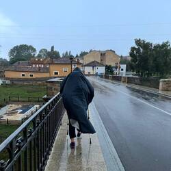 Cloudy, but not rainy. Lots of towns or villages in between making the walk seem easier because it’s distracting from the pains here and there in the body.