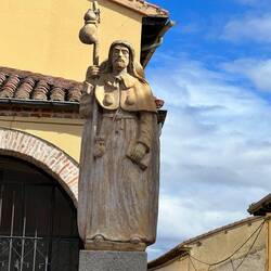 We made it!!! The sun started beating down the last part and we were so happy to see town. We’re checked into Hostel Morena. It’s very nice with an antique wood bed, armoire and dresser and wood plank floor. The hot shower was restorative. Ready to go do laundry and go to the hangout area to talk about the day with other pilgrims. I was so tired I grabbed the clean clothes bags and didn’t realize it until it was soapy and wet. Now I have wet clean clothes and dry dirty clothes. Fun!