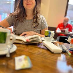 Last day of training for Roxanne before she leaves for Paris flight. We go to Pioneer Park with full packs and trekking poles. We’ve done many pack shakedowns where we try to decide if carrying XY&Z is really that important. We get a weight lifting session with the best trainer around, Rilee Lacey. She worked out our arms today. Gonna need strength in those arms for trekking up hills with pole working hard. Then it’s to the Sassy Biscuit for some Camino like cafe fun.Læs mere