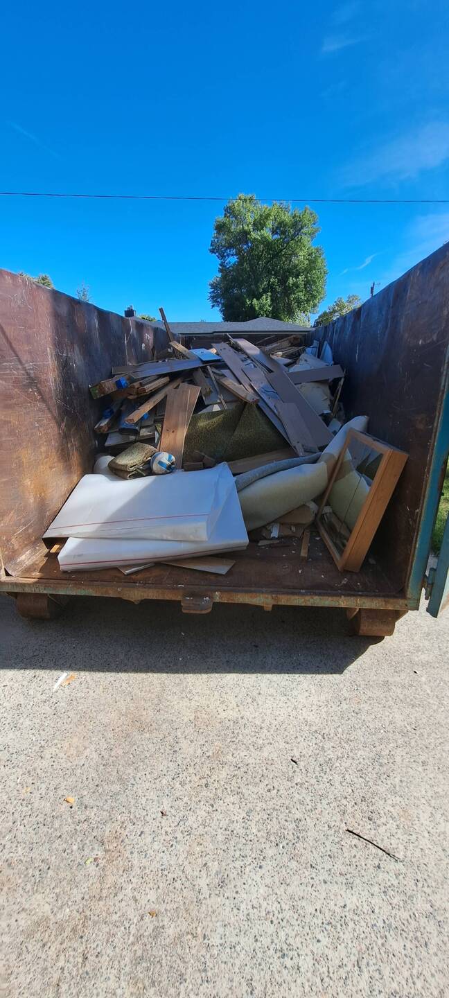 To ready for the renovation, first out with the old. The walls and old carpeting are pulled up. Old wiring and plumbing is removed. Appliances and kitchen is removed.