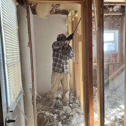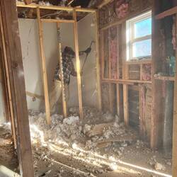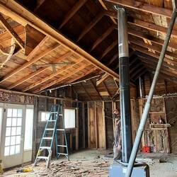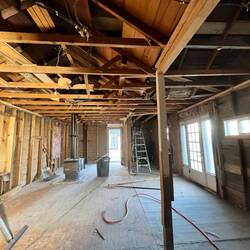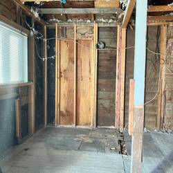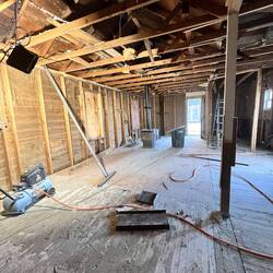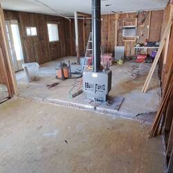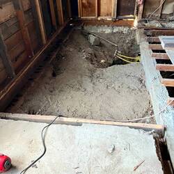 The first demo revealed a concrete pour was used inside the house to level the floor. We removed all of that concrete. We may need to jack the house in some places in order to level up the floors. IfRead more