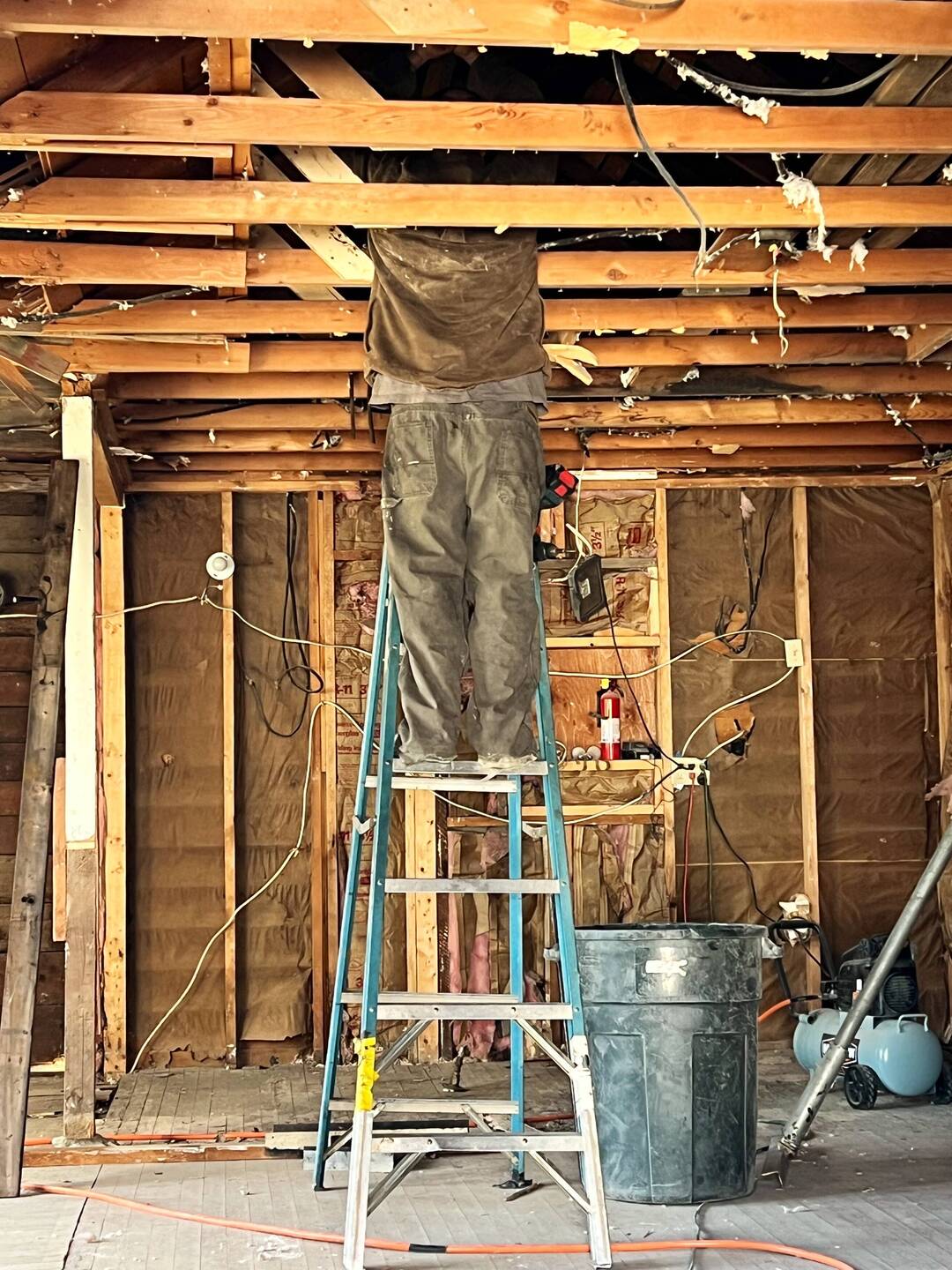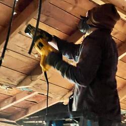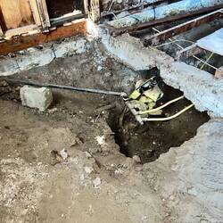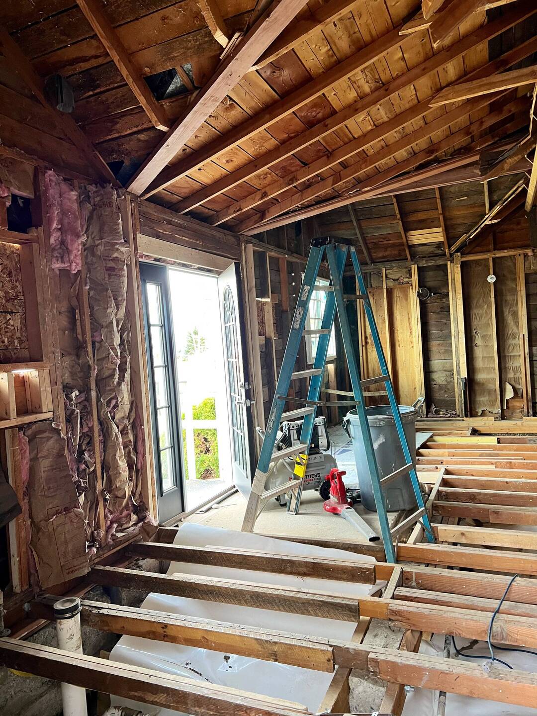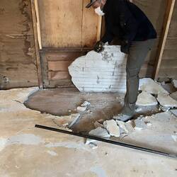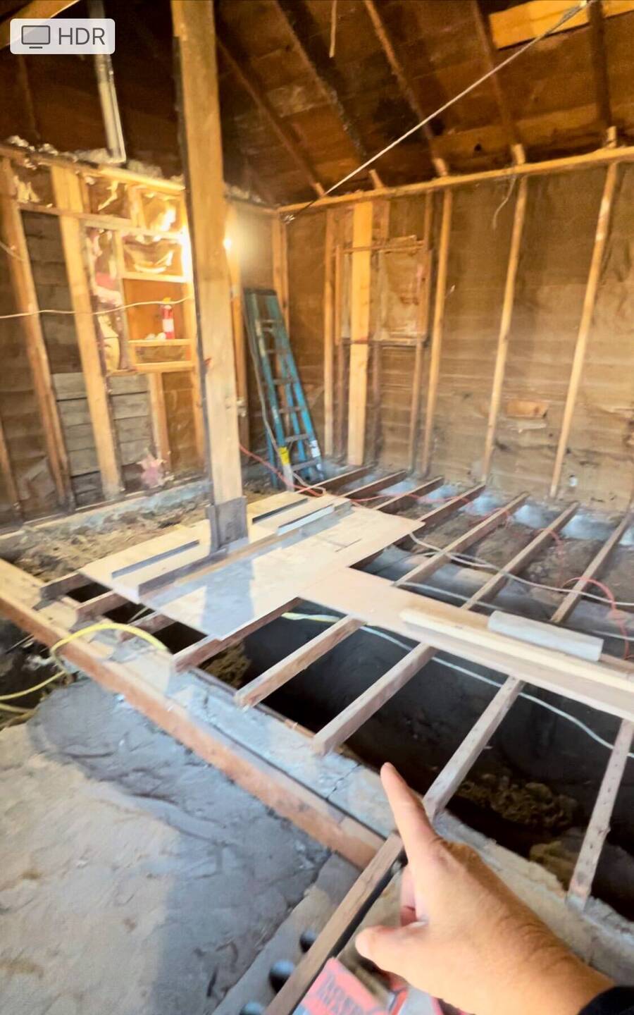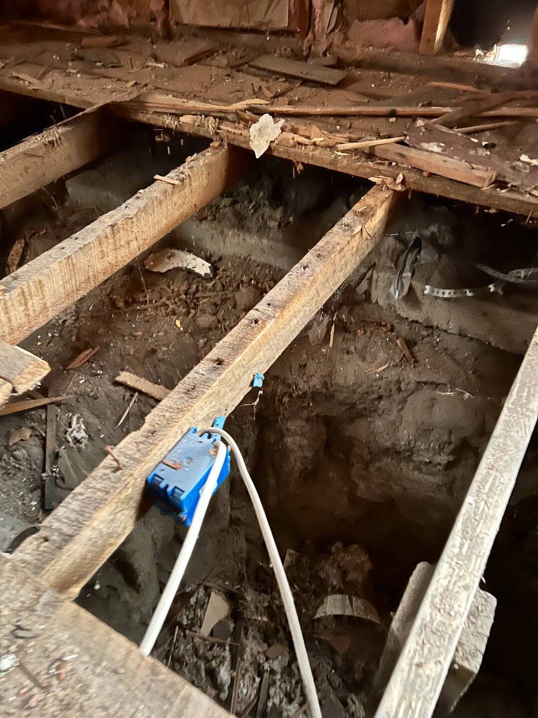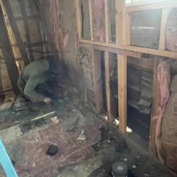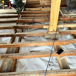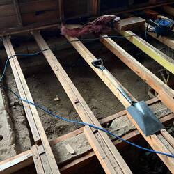 Removed most of the old floor, getting access to the crawl space.