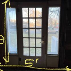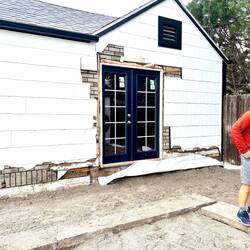Brice gets the Lowe’s front door and patio door installed. Windows arrived finally. Brice got those installed. Some new siding should hide all her blemishes.