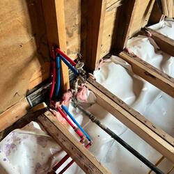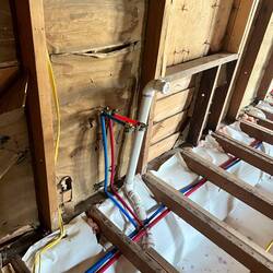 The old plumbing and electrical was out of date and patched together after several remodels on the old house. Brice installs all new Pex pipe and relocates the lines where they will be needed in theRead more