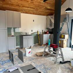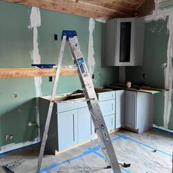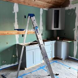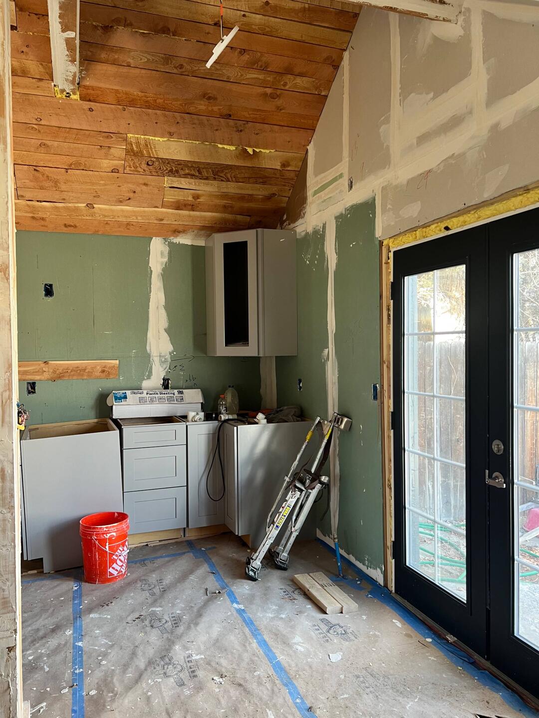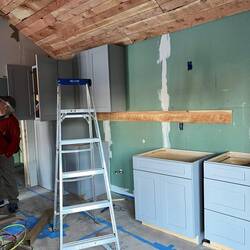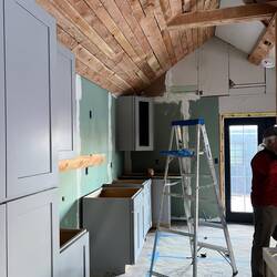 The Little House gets its cabinets today. The kitchen is coming together.