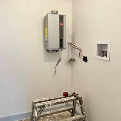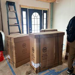 Today we put together the bathroom vanity, got some fittings for the fireplace to make room for the mantle, got the on demand hot water heater attached to the wall. The dark colored interior doorsRead more