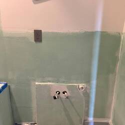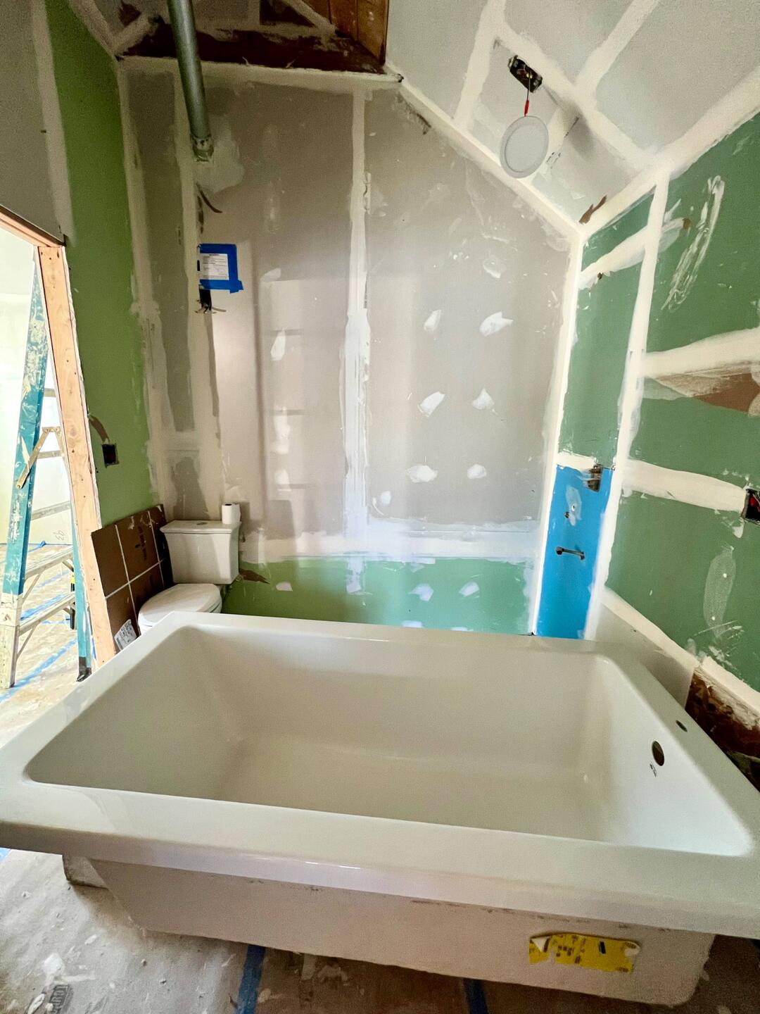 Taping the Drywall, installing bathtub