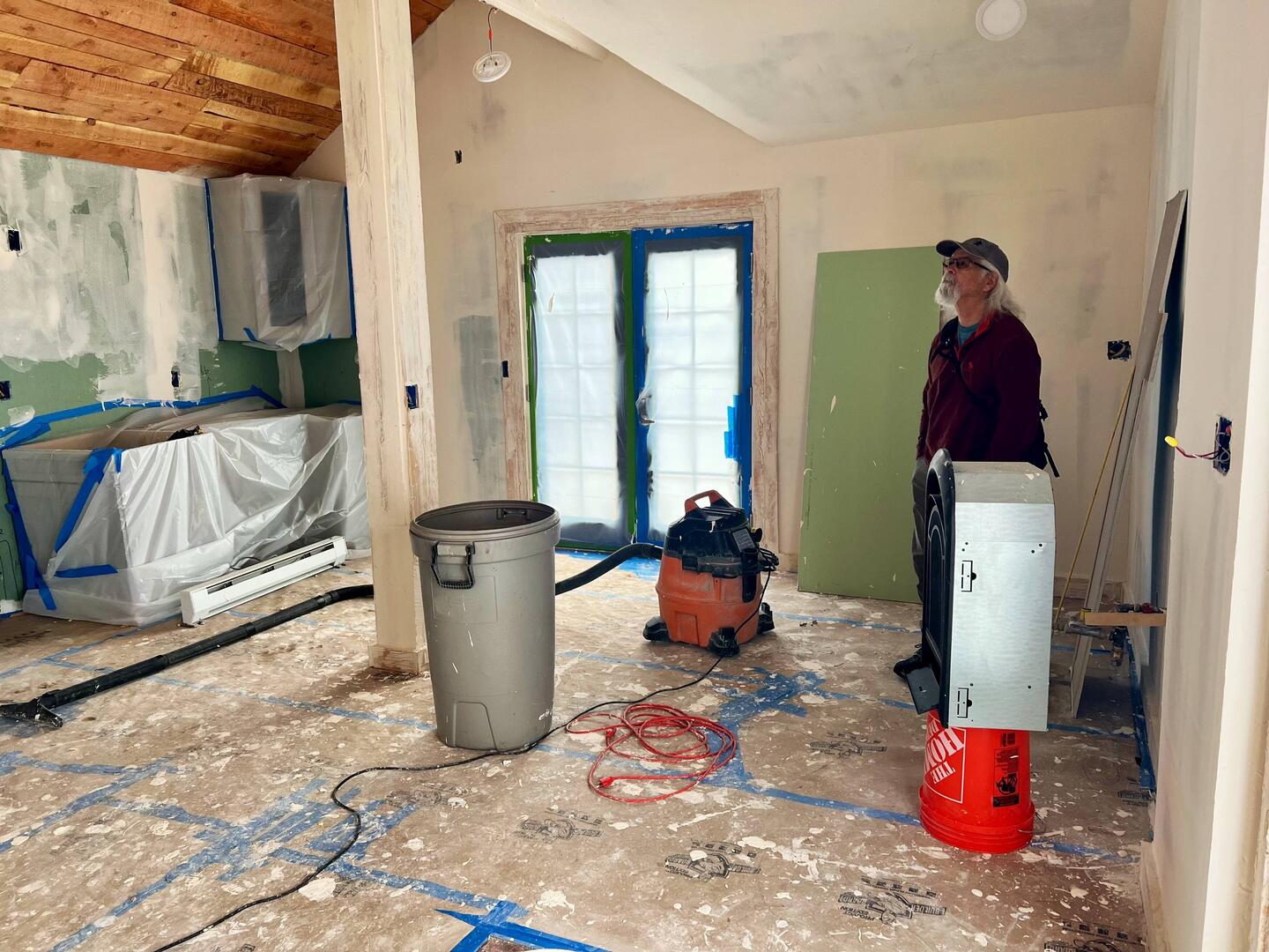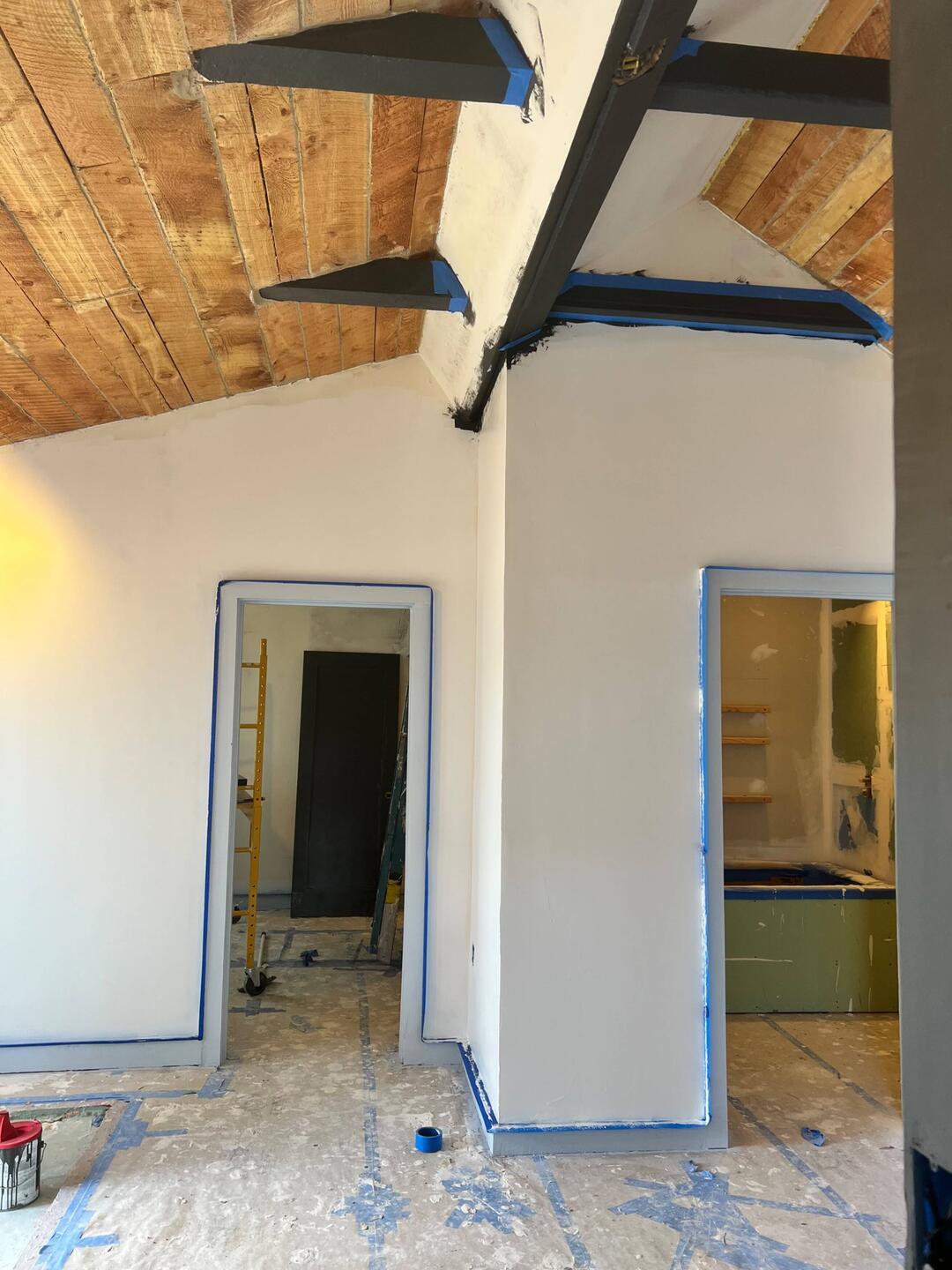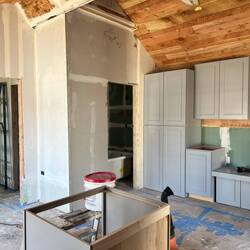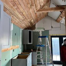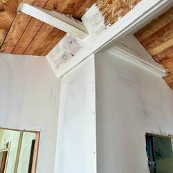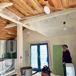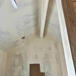 These progress photos don't really show how much work went into putting drywall, tape and mud in all the tight spaces and all the unusual angles. Brice had to have cussed this ceiling often when heRead more