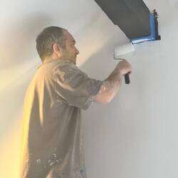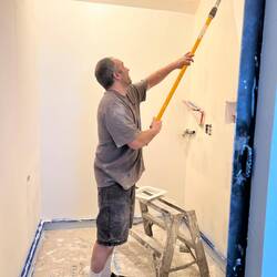 The long and tedious process of taping the drywall seams and preparing for floating the mud surface and texture onto the drywall.
