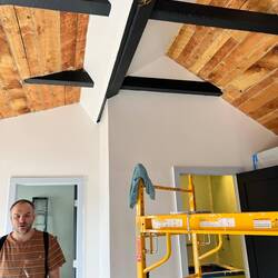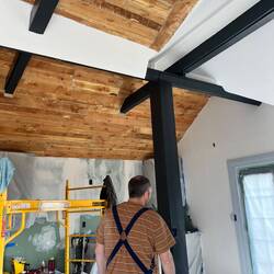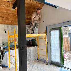 Brice did a bit more clean up and then we planned and measured for beam support both temporary and permanent to allow the ceilings to be lofted throughout the house. We measured window and door spaceRead more