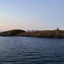 We have just passed the Arctic Circle as we head Southbound the sculpture is a Globe on Vikingen Island marking the point
