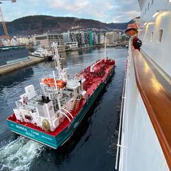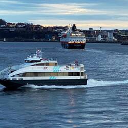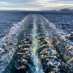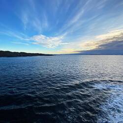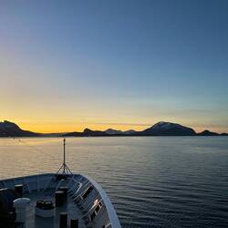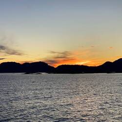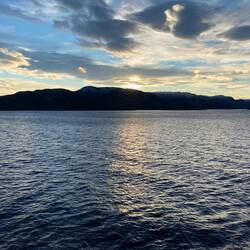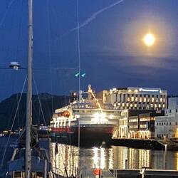 Having just left Florø, Norway is clearly determined to show us more beautiful sights and sunrises, alongside the moon, on our way to Bergen