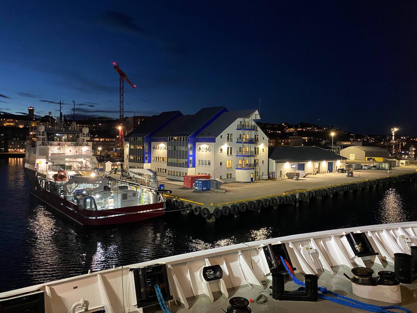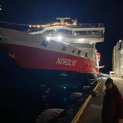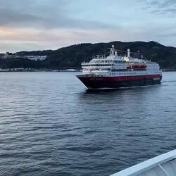 On our departure the Kong Harald, also a Hurtigruten Coastal Ship, was entering the harbour on the start of its journey to Kirkenes