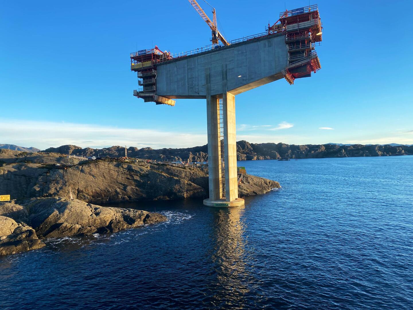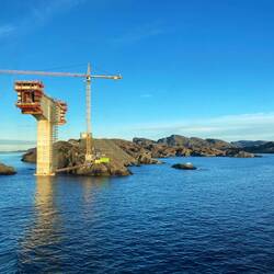 We pass under the bridge building which will join Yetre Sula Island to Sula and called the Ytte Steinsund Bridge, at 811 m long and 59 m wide it replaces the Daløy–Haldorsneset ferry allowing access year round