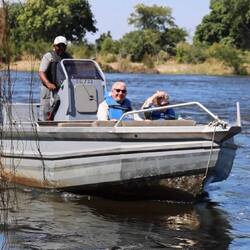 A truly unforgettable day. We were driven to The David Livingstone Centre where we boarded a speedboat to go up the Zambezi to Elephant Cafe. As we left we could see the ‘steam’ from the fallsBaca lagi