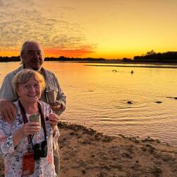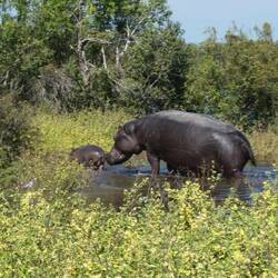 For our Sundowner (III) this evening we decided to head for the Hippo Hide an area where the Hippos came ashore to graze at night. It was fabulous and we watched the Hippos and Crocodiles up to theirBaca lagi