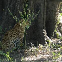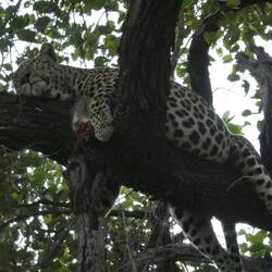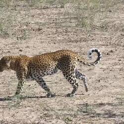 Another 5:00 wake up to get on the road for a 6:00 start. We started our drive to where the Leopard had retired to enjoys its Velvet Monkey kill last night, but it was already gone, a small monkeyBaca lagi