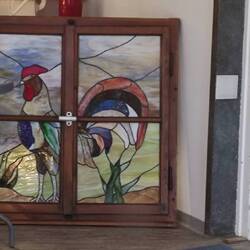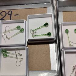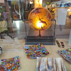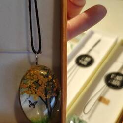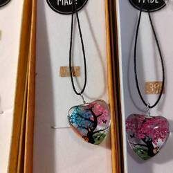 I purchased the yellow necklace. He told me how it was made using the kiln. I would like to try it!