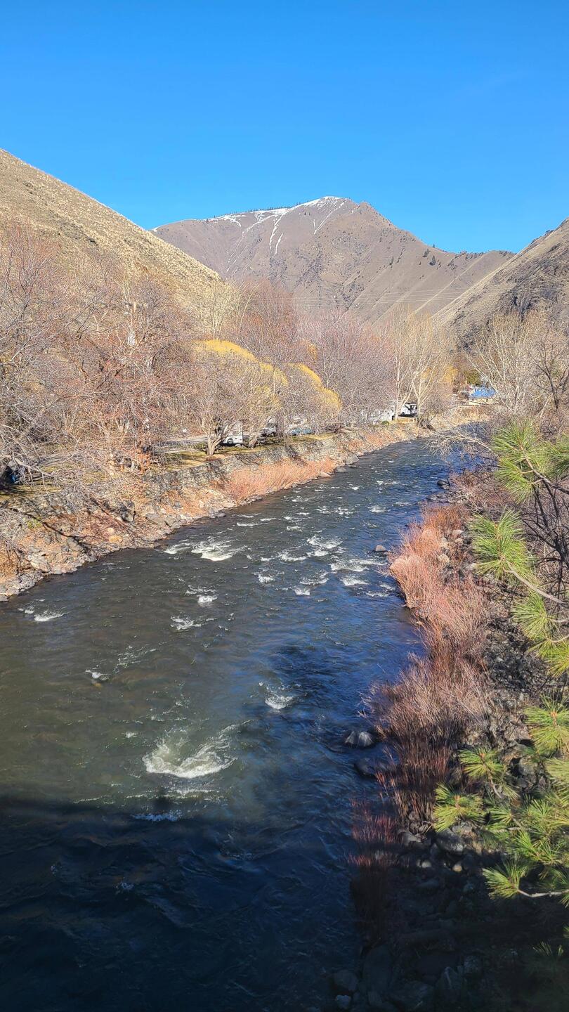 We made a spur-of-the-moment decision to stop at the Riverside RV Park on the Salmon River for our final night of the trip. We cooked steak over the campfire for dinner.