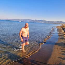 Ein deutsch sprechender Restaurantbesitzer freut sich über uns und möchte sofort mit auf das Foto.