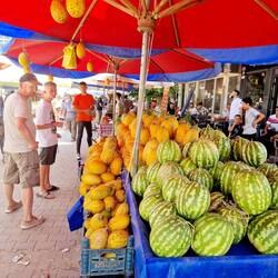 Wir suchten einen Bäcker und plötzliche standen wir mitten auf einen Basar. Überall wurde laut gerufen und jeder preißte seine Wahre an. Wir schienen die einzigen Touristen weit und breit zu sein.Baca selengkapnya