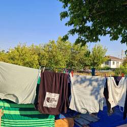 Wahnsinn wir sind hier alleine😁Ein Paradies für Noel...er hat den Pool nur für sich und Partymusik dazu😁Die nette Gastgeberin nimmt meinen Koffer Wäsche und schmeißt direkt eine MaschieneBaca selengkapnya
