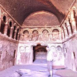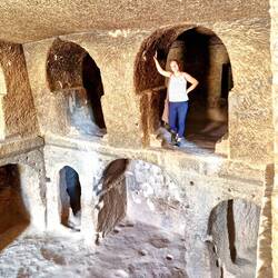 Nun besuchen wir das Selime Kloster ⛪. Dieses liegt auf einem Plateau am Ende des Ihlara-Tals. Es stammt vermutlich aus dem 8. Jahrhundert und wurde in den Stein gehauen. Heute ist ein Teil derもっと詳しく