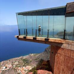 Visit of spectacular glas bottom sky walk of Mirador de Abrante. 600 m above village of Agulo.