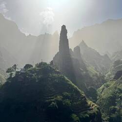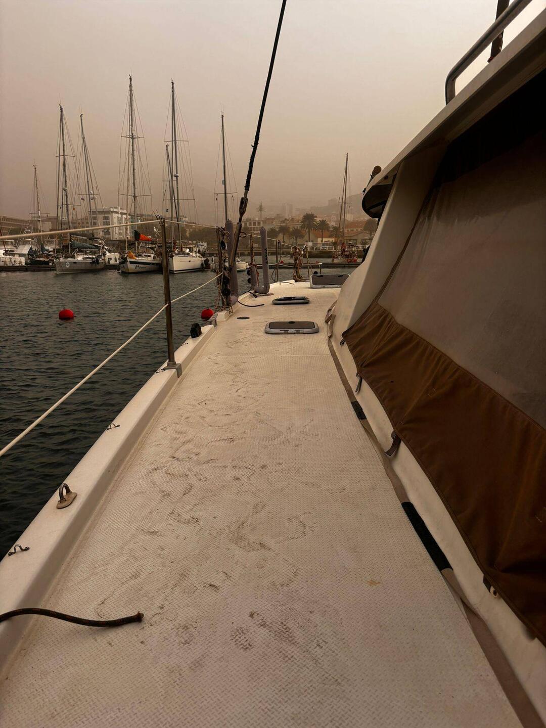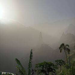 In den Wintermonaten weht wie in anderen Ländern entlang der Sahelzone der trockene und heiße Harmattan-Wind aus der Sahara auf den Kapverden. Roter feiner Sand bedeckt die Mahana. Dunstig wie inLæs mere