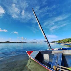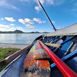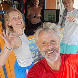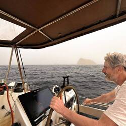 Sven kommt klitschnass zurück. Das Dinghy ist voller Wasser. Der Schrecken steht ihm noch im Gesicht. Er ist Wort karg.