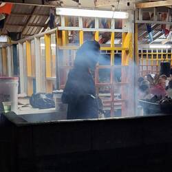 "Caribbean Taste" is a small restaurant in third row close to Nelson Harbour, Antigua. Grandma prepares the food. She writes the menu every morning with chalk on the board. "Fungee" I choose. LocalsLæs mere