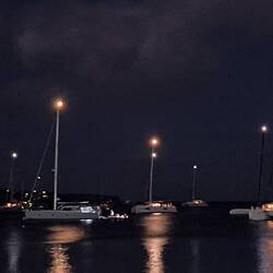 Die Fallen klappern an den Masten. Ankerlichter schaukeln in der Höhe von links nach rechts. Mit Sonnenuntergang kehrt Ruhe auf der Reede ein. Warmes orangenes Licht dringt aus den Kajüten. KinderLæs mere