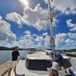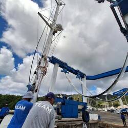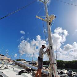 Le mât "Mahana" est démonté. Il a bougé de quelques mm au pied. Ensuite j'ai fait remplacer les haubans et l'étai après 10 ans pour le Pacifique.